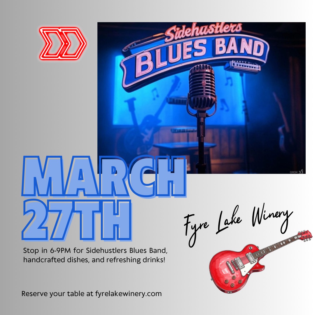 Join us at Fyre Lake Winery on 3/27 for a live set from Sidehusters Blues Band 6–9PM!